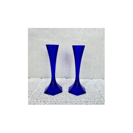 Par de Castiçais de 1 lume em cristal “ Atlantis “ Azul.
