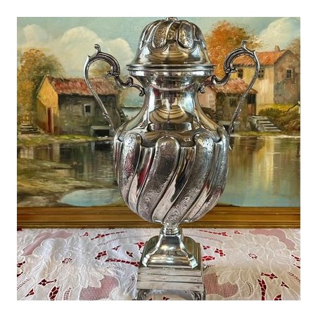 Lindíssima ânfora c/asas e com tampa em estanho português polido