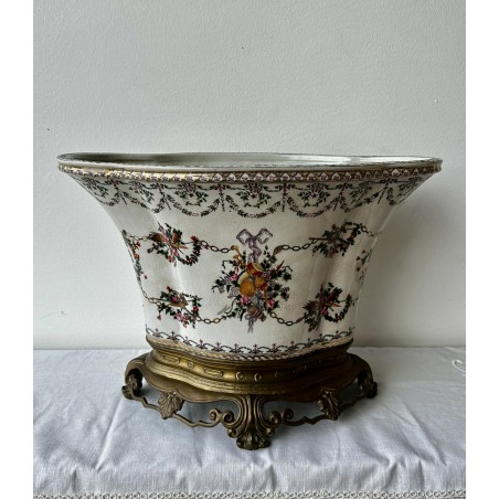 Lindíssimo Centro de Mesa- Floreira em porcelana , com base em Metal Dourado