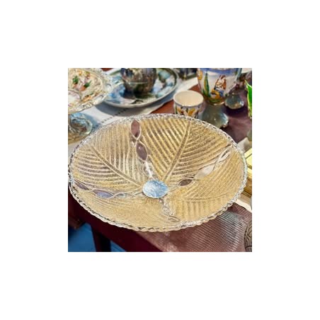Fruteiro em vidro c/ base em estanho português . Peça Nova