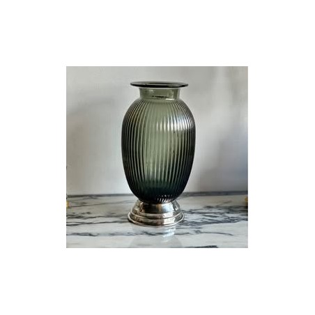Jarra em vidro Preto com a pé em estanho português 95%,